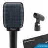 Le e906 du constructeur Sennheiser est un microphone dynamiqueà directivité supercardioïde. Sa silhouette plate a été spécialement développé pour la prise de son frontale de baffles de guitare, de percussion ou de cuivre. Il est à l'aise dans toutes les situations et restitue fidèlement le son de votre ampli de guitare éléctrique, caisse claire, percus, cuivres sur des scènes live. Il dispose d'une excellente fidélité. Le placement est sensible donc exigent mais ne transmet aucune vibrations. Il dispose de 3 types de sons commutables (brillant, normal, doux). De construction robuste grâce à son corps en métal, c'est le micro idéal pour la scène. Il bénéficie d'une forte isolation des autres sources audio et sa bobine de compensation de ronflements réduit tout bruit induit par interférence électromagnétique locale.